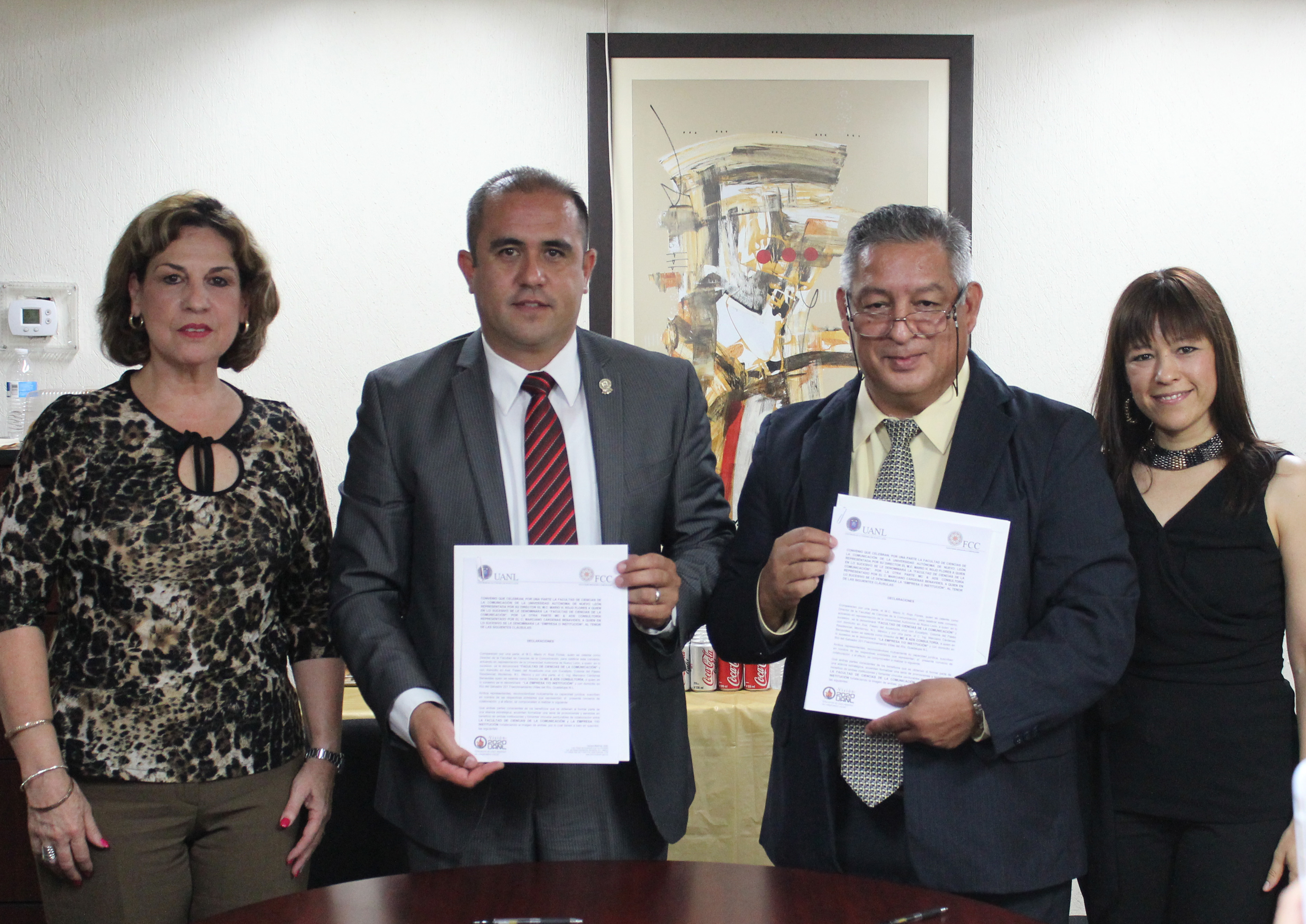 El miércoles 27 de mayo de 2015 en punto de las 14:00 horas, el Director de nuestra facultad Mario Humberto Rojo Flores, en conjunto con el Ing. Marciano Cárdenas Benavides, Director de MC & Ads Consultoría, la Lic. Elisa Navarro Cortés, Secretaria de Vinculación, y la M.C. Selene Céspedes del Fierro, Coordinadora de Relaciones Institucionales; firmaron un convenio entre la Facultad de Ciencias de la Comunicación y MC & Ads Consultoría, en el cual ambas instituciones obtendrán beneficios a través del Programa “Aliados” de la Facultad, en la concertación y realización de proyectos que promuevan la imagen, productos y/o servicios de ambas instituciones. En dicho convenio, uno de los puntos pactados es que MC&Ads Consultoría, facilitará la colocación de estudiantes en etapa de servicio social o prácticas profesionales a los alumnos de nuestra institución”