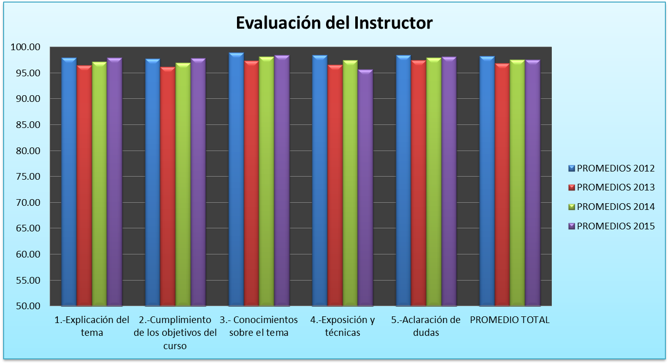 Estas evaluaciones demuestran la calidad de los cursos, tanto en instrucción, como en diseños adaptados a las necesidades de los clientes.